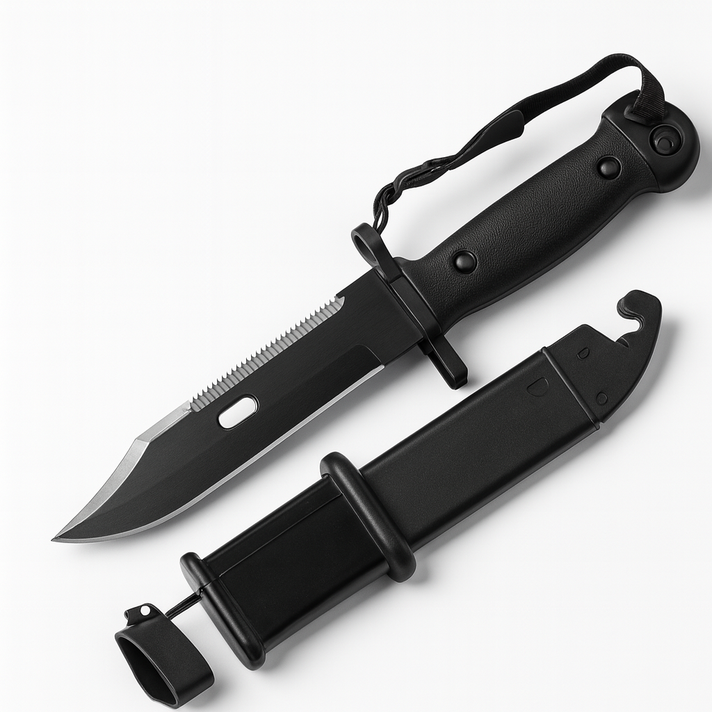 Robustes & multifunktionales Bajonett – dein Allround-Tool für Outdoor & Survival Produktbeschreibung: Das „Bajonett Titanholz“ ist mehr als nur ein Messer – es ist dein verlässlicher Partner für extreme Einsätze, Outdoor-Abenteuer und taktische Herausforderungen. Ob beim Campen, Bushcraft, Trekking oder im Einsatz: Dieses Bajonett vereint kompromisslose Stabilität mit cleverer Multifunktionalität. Die scharfe Klinge aus gehärtetem Stahl, kombiniert mit einem ergonomischen Hartholzgriff, macht es zum perfekten Werkzeug für jede Situation.