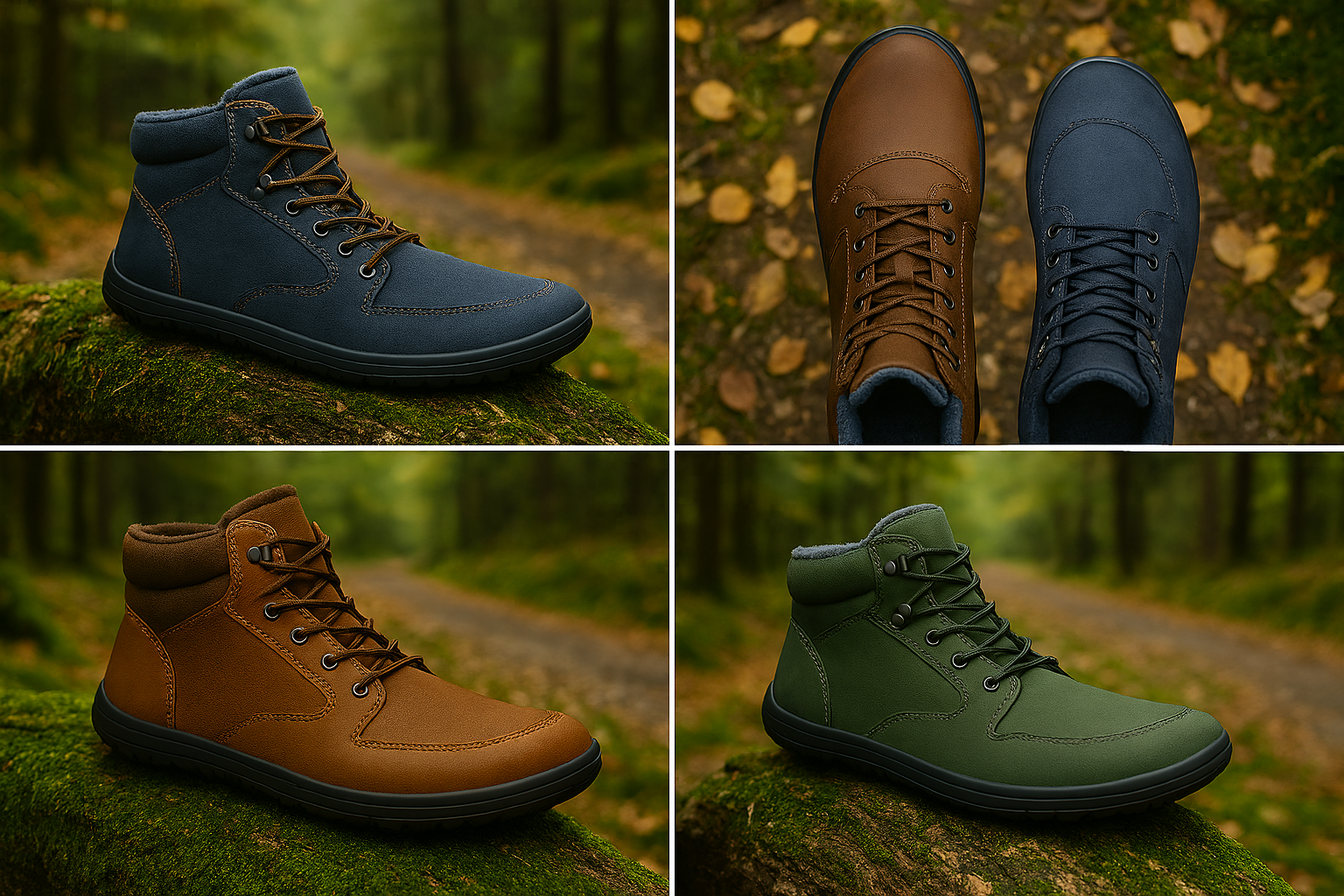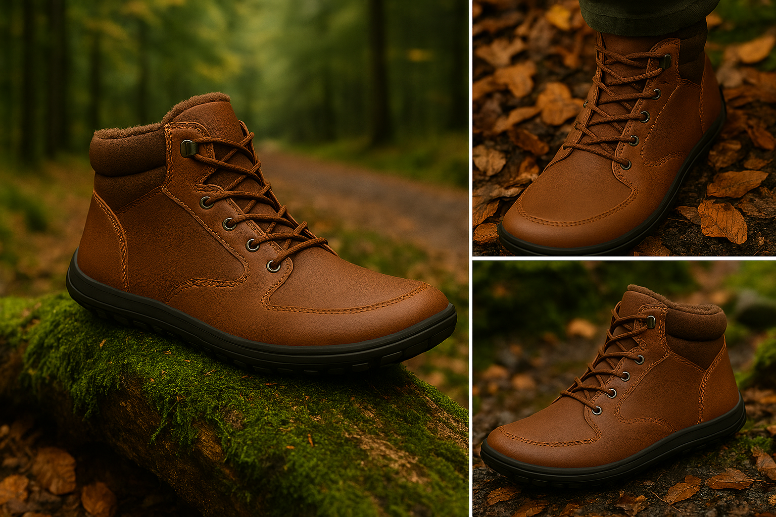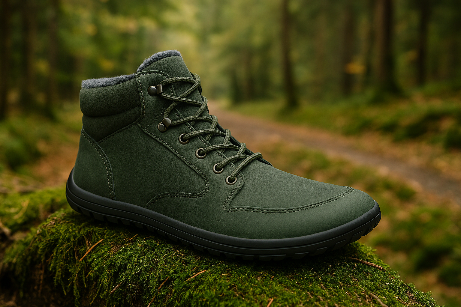 Produktinformationen "Barfuß-Wanderschuhe Herren Winter – Vegan, Bio & Nachhaltig in Braun, Grün und Blau"