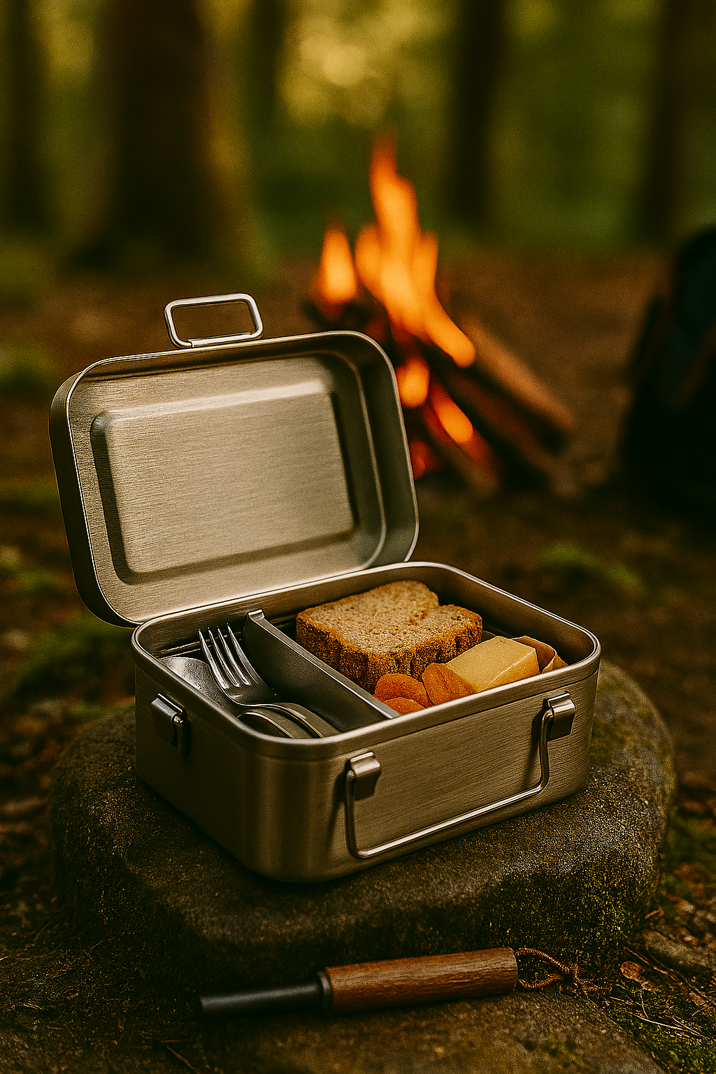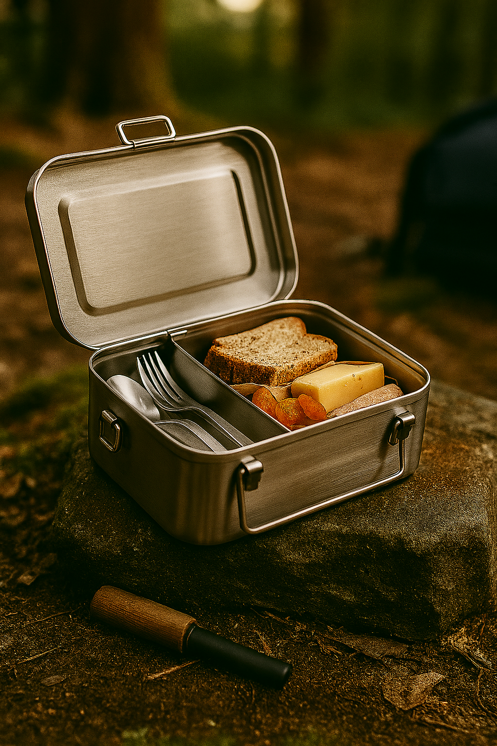 Edelstahl-Lunchbox für Outdoor & Abenteuer – Wasserdicht & Robust Produktbeschreibung: Dein Proviant. Sicher verpackt. Egal bei welchem Wetter. Diese hochwertige Edelstahl-Lunchbox ist der ideale Begleiter für Outdoor-Touren, Camping, Bushcraft oder Arbeit im Freien. Mit ihrem wasserdichten Design schützt sie deine Mahlzeiten zuverlässig vor Regen, Schmutz und Feuchtigkeit und überzeugt dabei mit robuster Funktionalität und stilvollem Look.