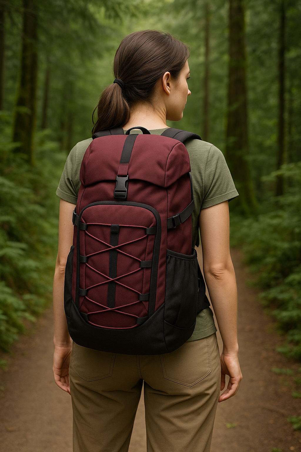 der Rucksack auch auf wurzeligen Pfaden sicher in Position - beim Hike,